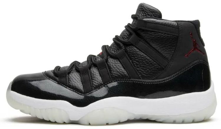 The Air Jordan 11 Retro ’72-10’ celebrates the 1995-96 NBA championship season where Jordan won season MVP and the Chicago Bulls achieved a 72-10 regular season record. Released in December of 2015 . the all-new colorway features a premium tumbled leather upper with microfiber suede and patent leather overlays. The design also includes a red and black carbon fiber shank plate.
