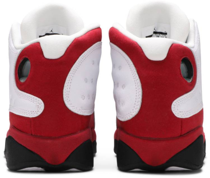 Previously released as an adult shoe in 2010 . this kids’-size shoe is a retroed version of the OG ‘Chicago’ colorway that Michael Jordan wore during the 1997-1998 season. Honoring Jordan’s last season in Chicago . the Bulls’ red . white and black color scheme is featured. The white leather upper gives way to Team Red suede on the mudguard . midsole and heel. Black appears via the Jumpman branding on the tongue and on the outsole.