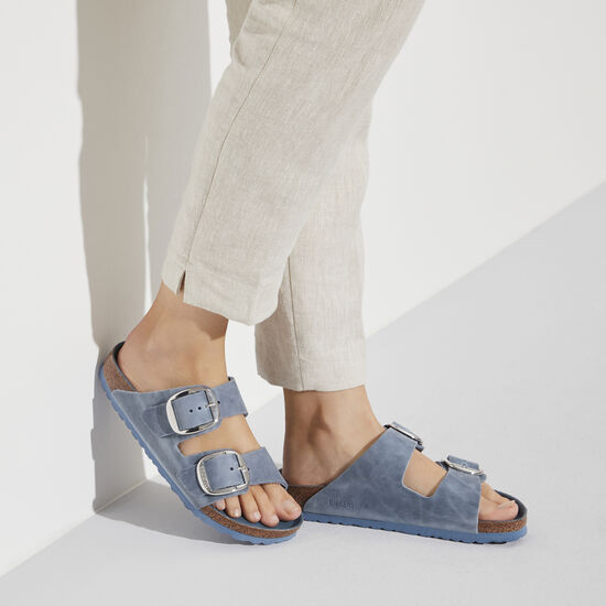The legendary two-strap design from Birkeqdfnstock with amplified buckle accent - the Arizona Big Buckle. The Big Buckle version features a large, elegant buckle creating a bold yet minimalist design. Shown in oiled nubuck leather.